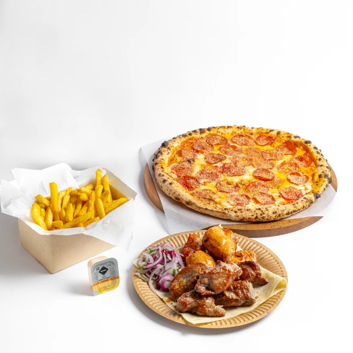 Кур. Шашлык + Свин. Шашлык. + Пицца Пепперони 30 + Фри 300 гр + соус