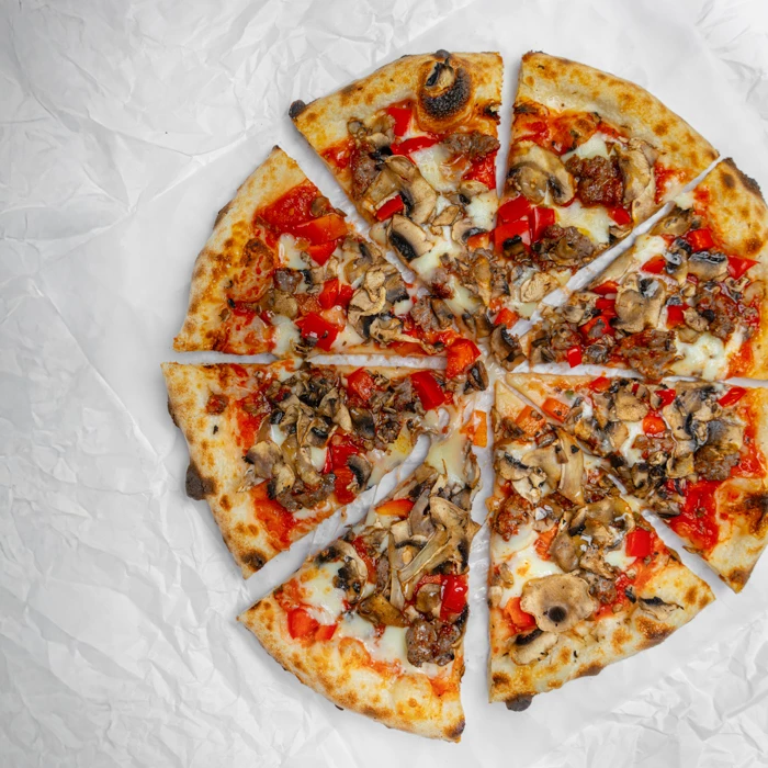 Нежная мраморная говядина, фирменный томатный соус, сыр моцарелла, сочный болгарский перец, шампиньоны. Делается на тонком тесте с воздушными бортиками. Поливается оливковым маслом Extra Virgin. Готовится в итальянской печи на дровах.